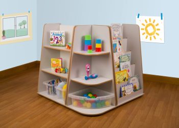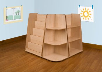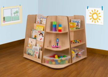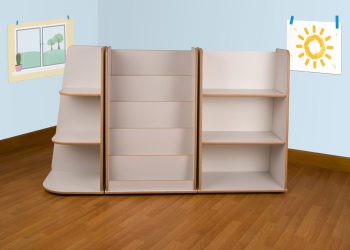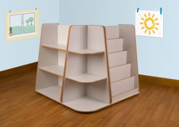 A set of three anti-topple shelf units which are easily accessible, sturdy and versatile. They are designed to accommodate a variety of different sized items and therefore maximise storage. The set includes one compact shelf unit, a corner shelf unit and a book display unit which can be placed in any desired combination.