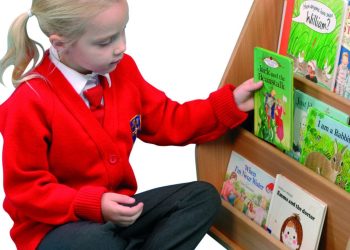 A double-sided mini book display unit with 6 compartments designed for displaying books face on and to enable easy access.
