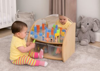 A versatile sensory exploration centre designed for babies and toddlers. This engaging unit can be used in two orientations, encouraging young children to explore their own reflections or observe mirrored objects. Ideal for promoting curiosity and self-awareness, it comes complete with two trays and built-in safety mirrors for safe, hands-on discoveries.